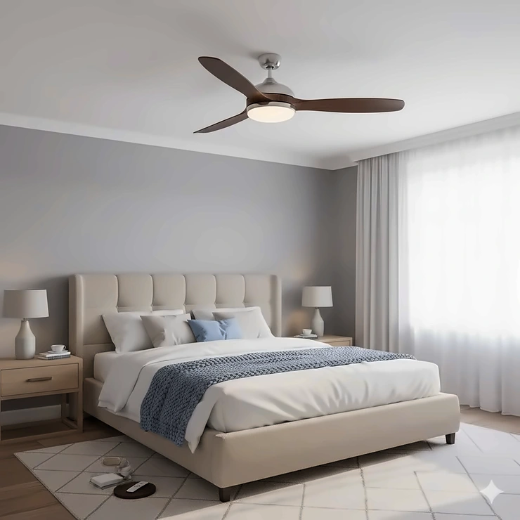 Modern bedroom led ceiling fan with light models increasingly utilise DC (Direct Current) motors rather than traditional AC motors. This isn’t just marketing jargon – the difference genuinely matters for UK homeowners.